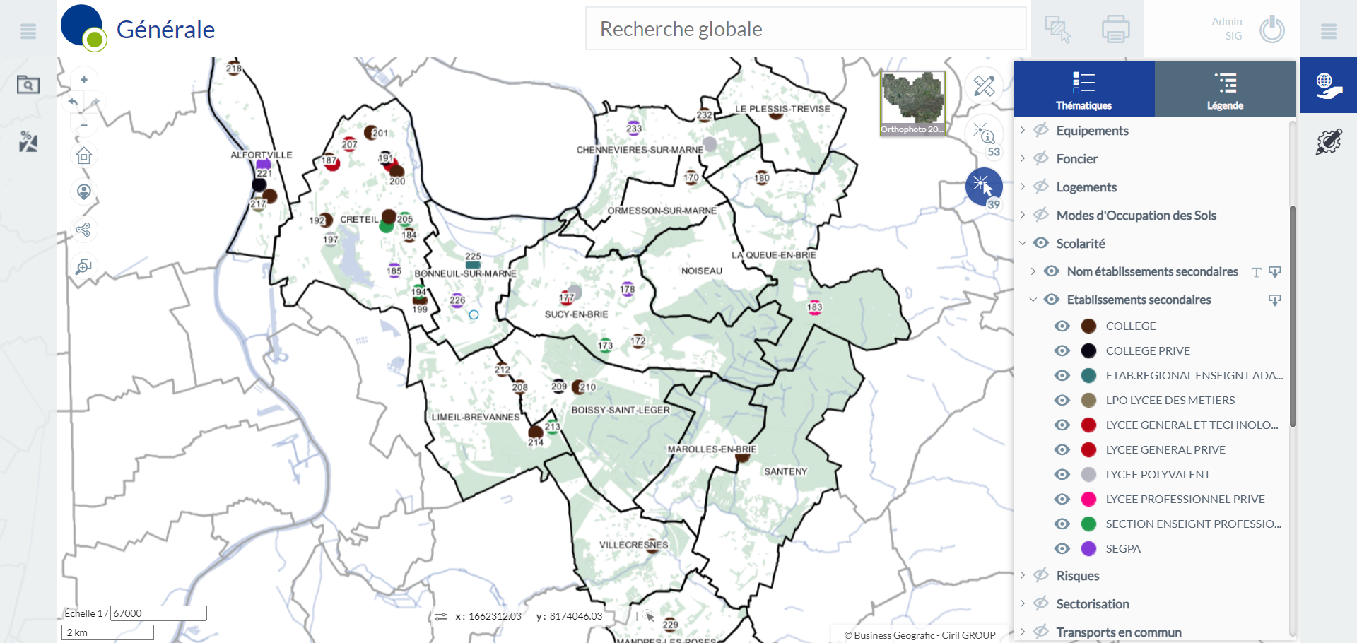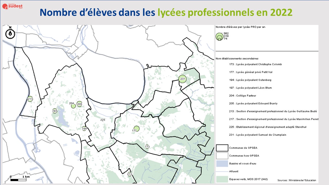 | Etablissements secondaires | Février 2024 | Oui : points | Localisation des établissements secondaires sur le territoire. Associée aux effectifs par année et par établissements. | Les établissements sont distingués par leur secteur. |