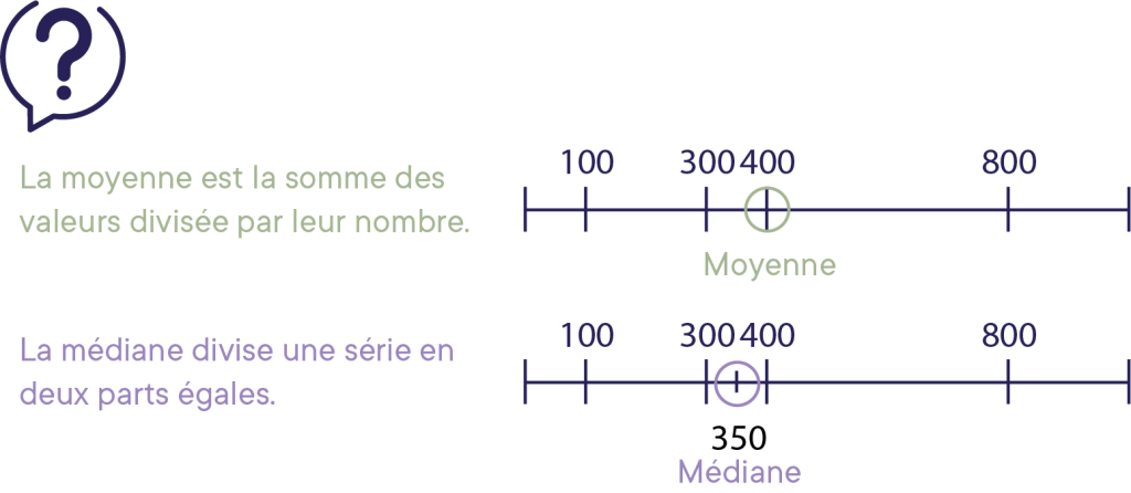 La médiane est le point central, elle permet d’éliminer les valeurs extrêmes et d’exprimer la valeur du milieu. Elle est utilisée dans le diagnostic.