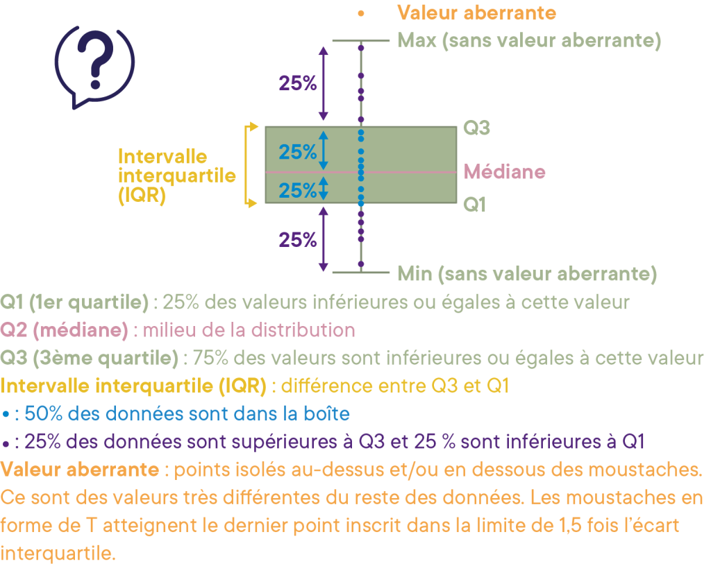 Pour visualiser la distribution d’une série de données numériques (ici l’IFSE), on utilise le graphique en boite à moustaches (boxplot). Il montre où se concentrent les valeurs, quels sont les extrêmes et s’il y a des valeurs atypiques.