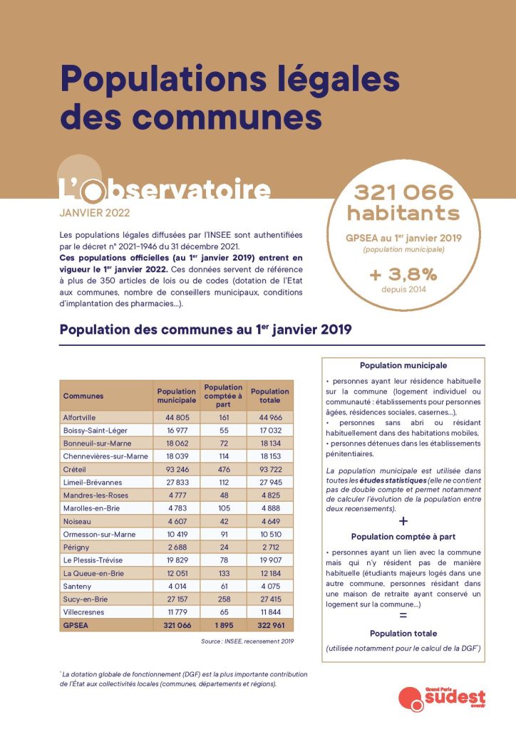 L’Observatoire de Grand Paris Sud Est Avenir a mis à jour son étude sur les populations légales au sein de son territoire, conformément à sa vocation d’éclairer les politiques publiques grâce aux données. A l’image du réveillon, les nouveaux chiffres de population reviennent pour rythmer notre passage dans une nouvelle année. Dans cette première publication de 2024, l’Observatoire de Grand Paris Sud Est Avenir partage les données territoriales et apportent des précisions sur la meilleure manière de les lire et de les comprendre.